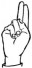 На ћирилици написано МИЛА РУЧНОВ састоји се из 10 слова [?]. Исписано ћириличном једноручном азбуком за глувонеме: